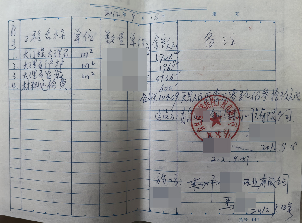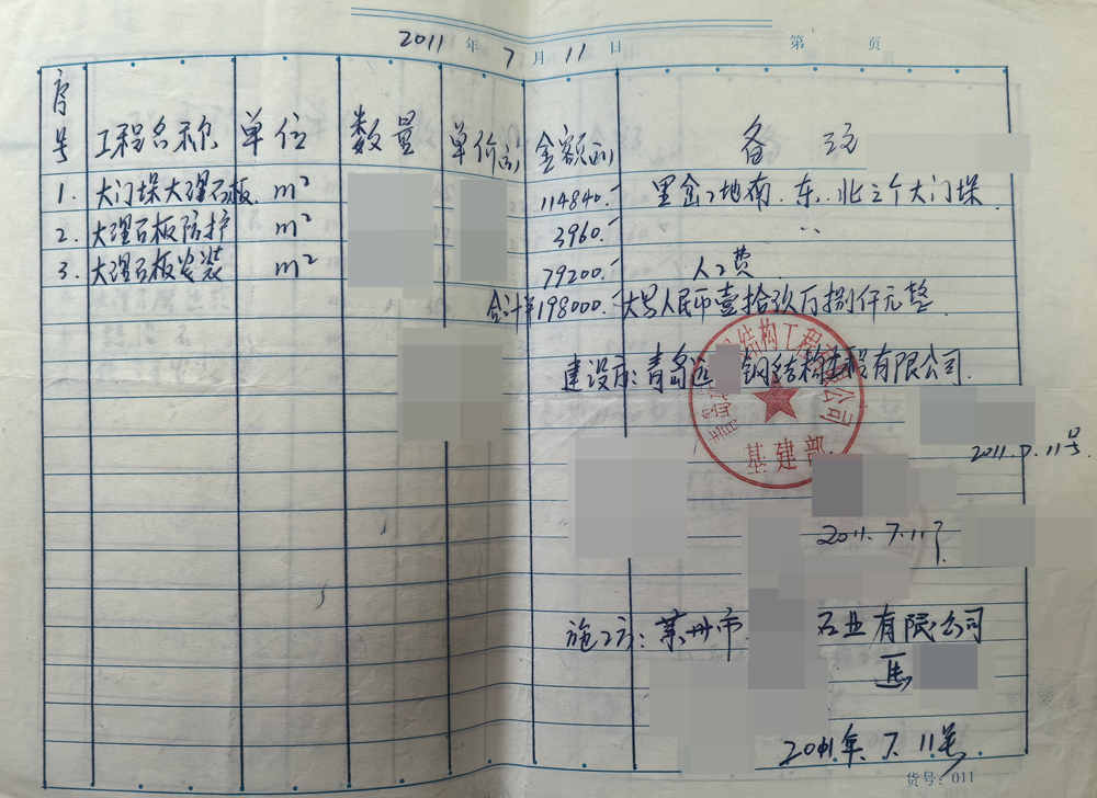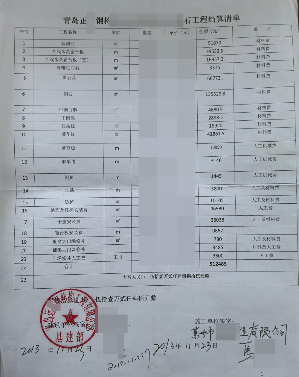 青島遠*鋼結構工程公司拖欠辦公樓及廣場大理石項目人工、材料費